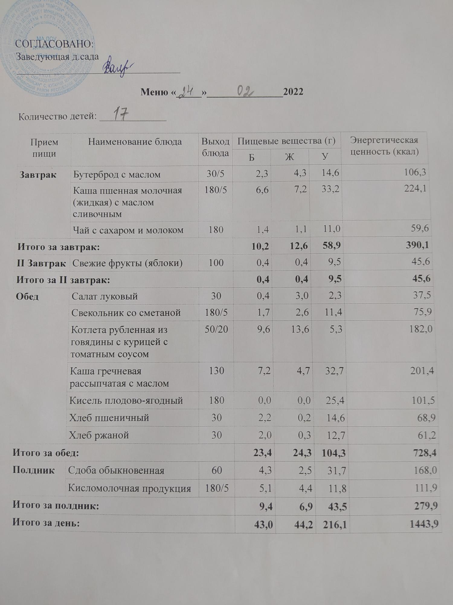 Информация о наличии диетического меню в образовательной организации