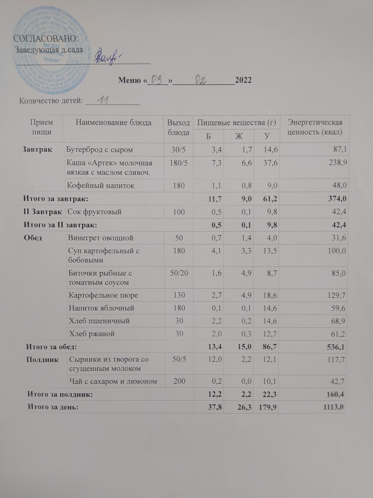 Информация о наличии диетического меню в образовательной организации